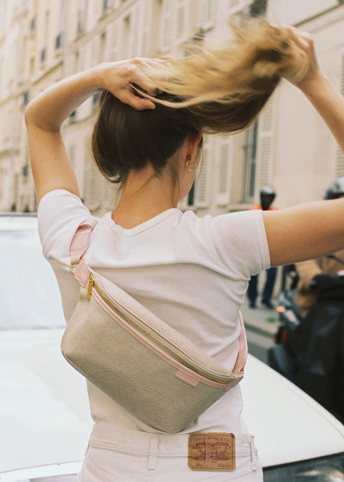 The L/UNIFORM fanny pack combines elegance and practicality, ideal for a city outing or a trip. Made of soft and strong canvas with full-grain calfskin details, it has two compartments for optimal organization. Its adjustable strap allows for comfortable wearing across the body or at the waist. Personalize it with initials or colors for a unique bag. This canvas fanny pack is a testament to L/UNIFORM's craftsmanship, perfect for those looking for a functional and stylish bag for everyday use.