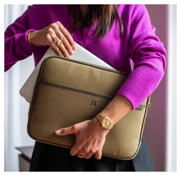 The L/UNIFORM No. 37 Laptop Case is perfect for protecting your 10- to 13-inch laptop. Made from sturdy canvas, it features a secure zipper closure and foam padding on both sides for optimal protection. The interior is lined with waterproof canvas to prevent damage from liquids. An exterior patch pocket provides convenient storage for cables and accessories. Available in multiple colors and finishes, this sleeve combines style and functionality.