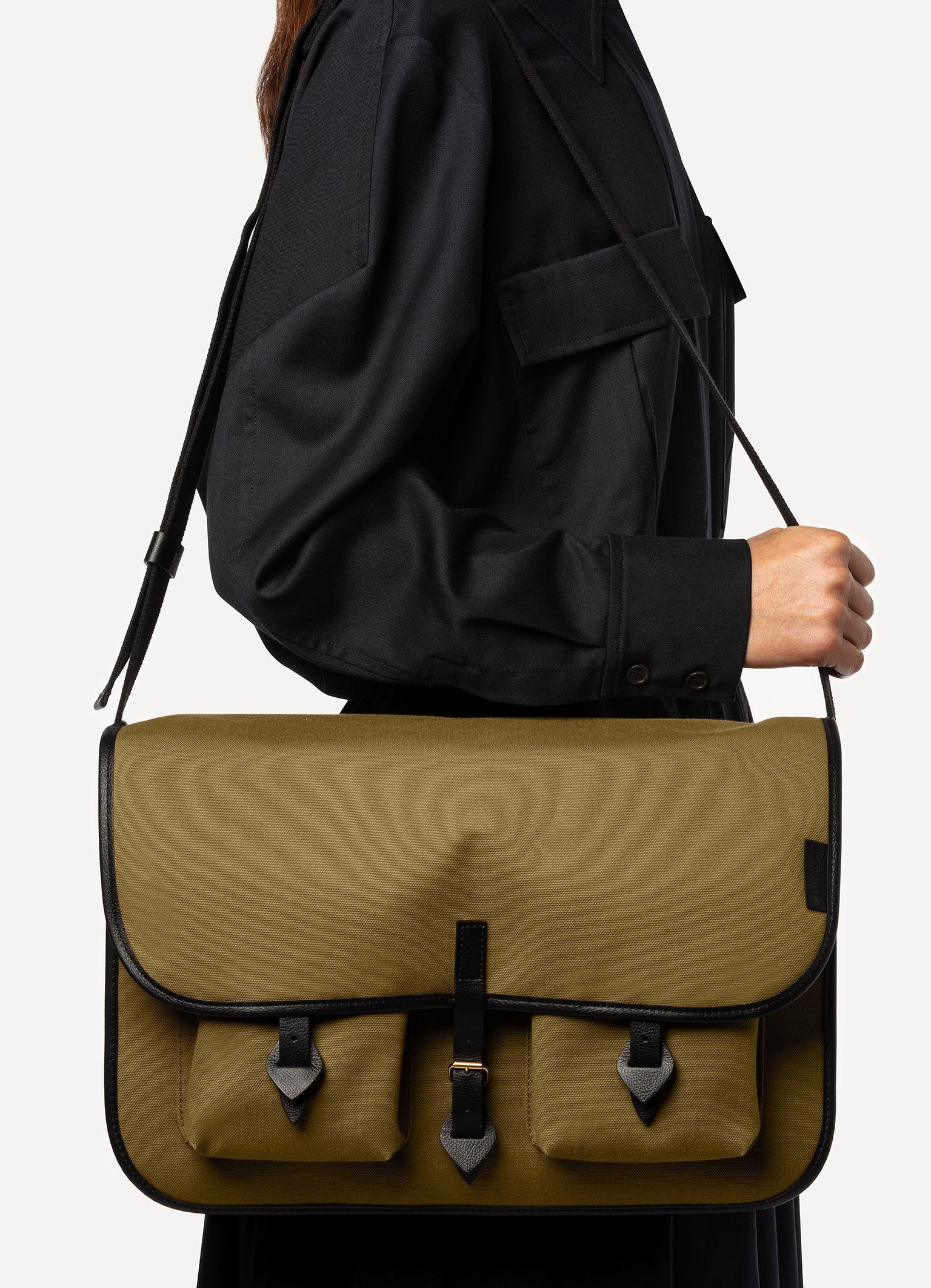 The L/UNIFORM No. 69 Photographer Bag is perfect for photographers on the move. It features two handles with leather grips, a central closure with a carabiner, a patch pocket on the back, two exterior pockets on the front, and two large compartments inside, enough to fit all types of lenses. With its four reinforced feet, this durable and practical canvas bag ensures optimal protection for your photo equipment while remaining elegant and functional.