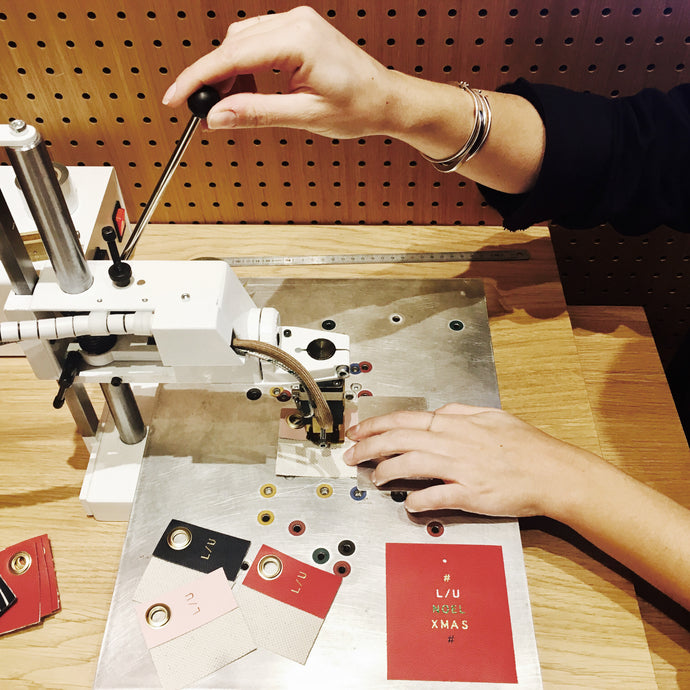 Sur les articles de petite maroquinerie en cuir, la personnalisation est réalisée à l’aide d’une presse à chaud. Cette technique fixe durablement le monogramme sans altérer la texture du cuir.