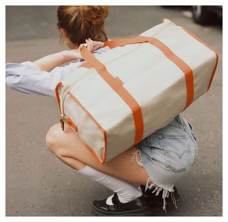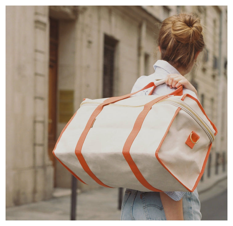 48 アワー バッグ No. 35 は、キャンバス織りの優雅さと、南京錠付きのダブル ジッパーの利便性を兼ね備えています。調節可能なショルダーストラップと、2 つのスナップ留めの留め具にまとめられた 2 つのハンドルにより、持ち運びが簡単です。 48 アワーバッグには、レザーバージョンで非常にエレガントなアドレスタグが付属しています。