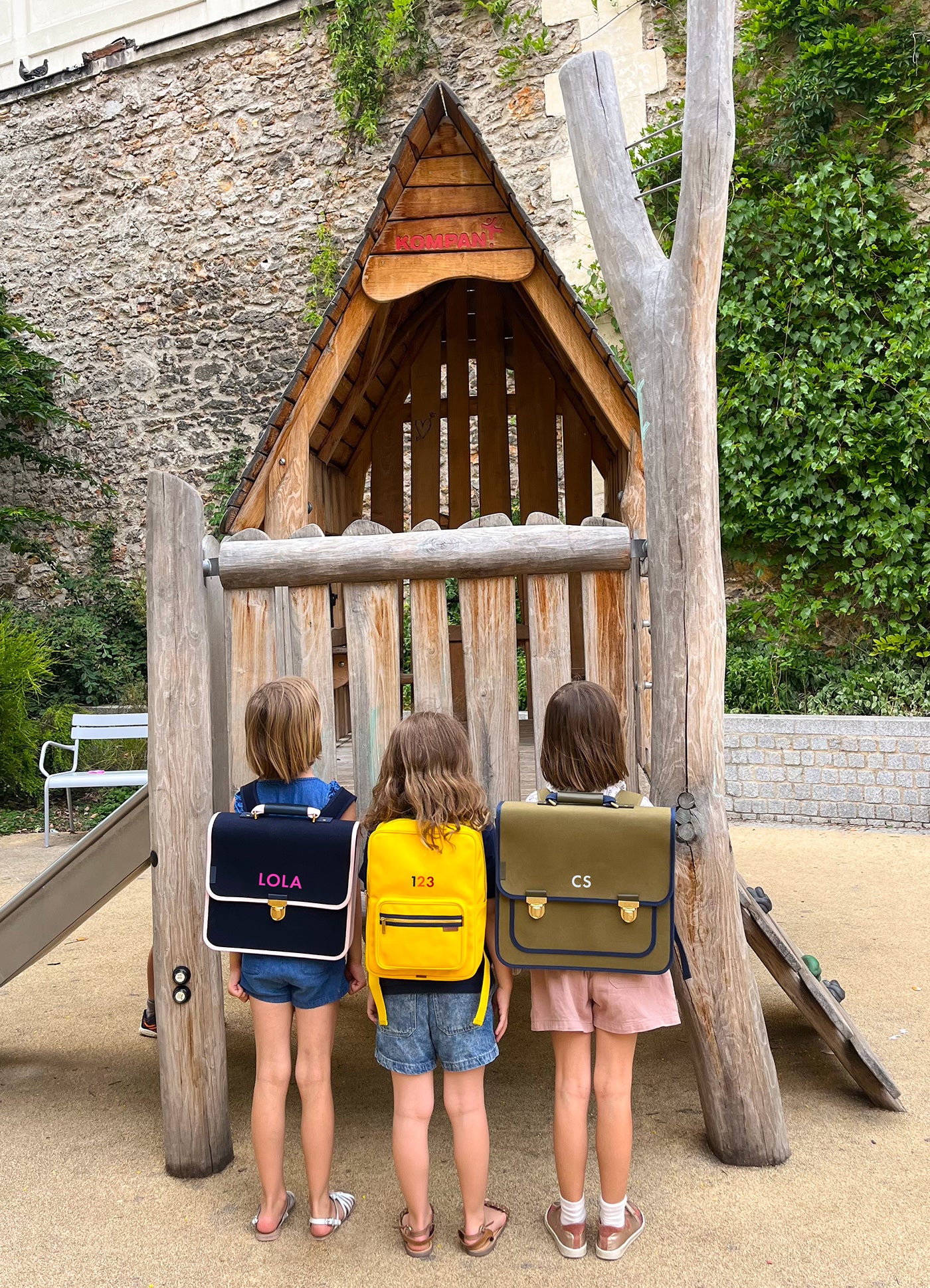 Le cartable a ses exigences : transporter le matériel de l’écolier du 1er septembre au 30 juin, exception faite si possible des vacances ; être à la fois léger et résistant ; y ranger et y retrouver chaque objet facilement : trousse, calculette, sandwich, ardoise, collier de nouilles. Le cartable No. 1 est en toile tissée. Deux bretelles ajustables et un dos matelassé permettent de le porter sur le dos et une poignée en cuir, à la main. Soufflets, rivets et barre de renfort accroissent sa solidité. On y place livres, cahiers et classeurs dans deux grands compartiments. En y regardant de plus près, on peut néanmoins y trouver un mot de la maîtresse chiffonné et un biscuit écrasé dans la petite poche à l'avant.