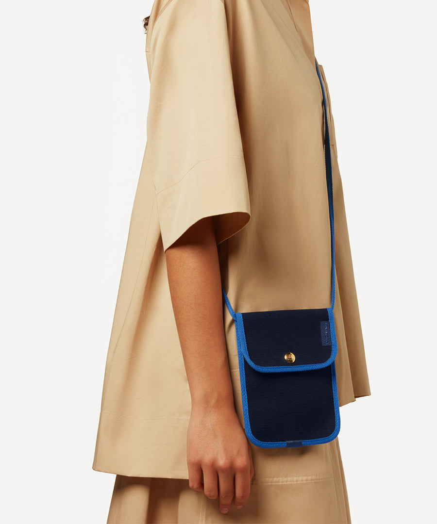 Comment avoir sur soi juste le nécessaire ? En adoptant la Pochette tour de cou No. 157 de L/UNIFORM. D’un côté, deux poches fermées par un rabat et un bouton pression, de l’autre, une poche plaquée. Un point, c’est tout. Et une bandoulière évidemment ! Pour se déplacer en toute légèreté muni de ses cartes et de son téléphone. L’essentiel de l’essentiel.